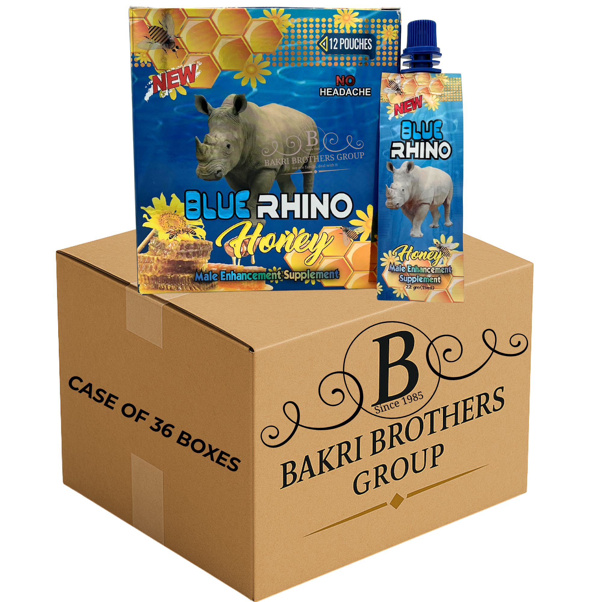 This case includes 36 display boxes. Each box contains 12 individual honey pouches, crafted with a powerful formula for performance and stamina. The bold blue and yellow honeycomb packaging with a rhino design ensures strong shelf presence and drives impulse sales.