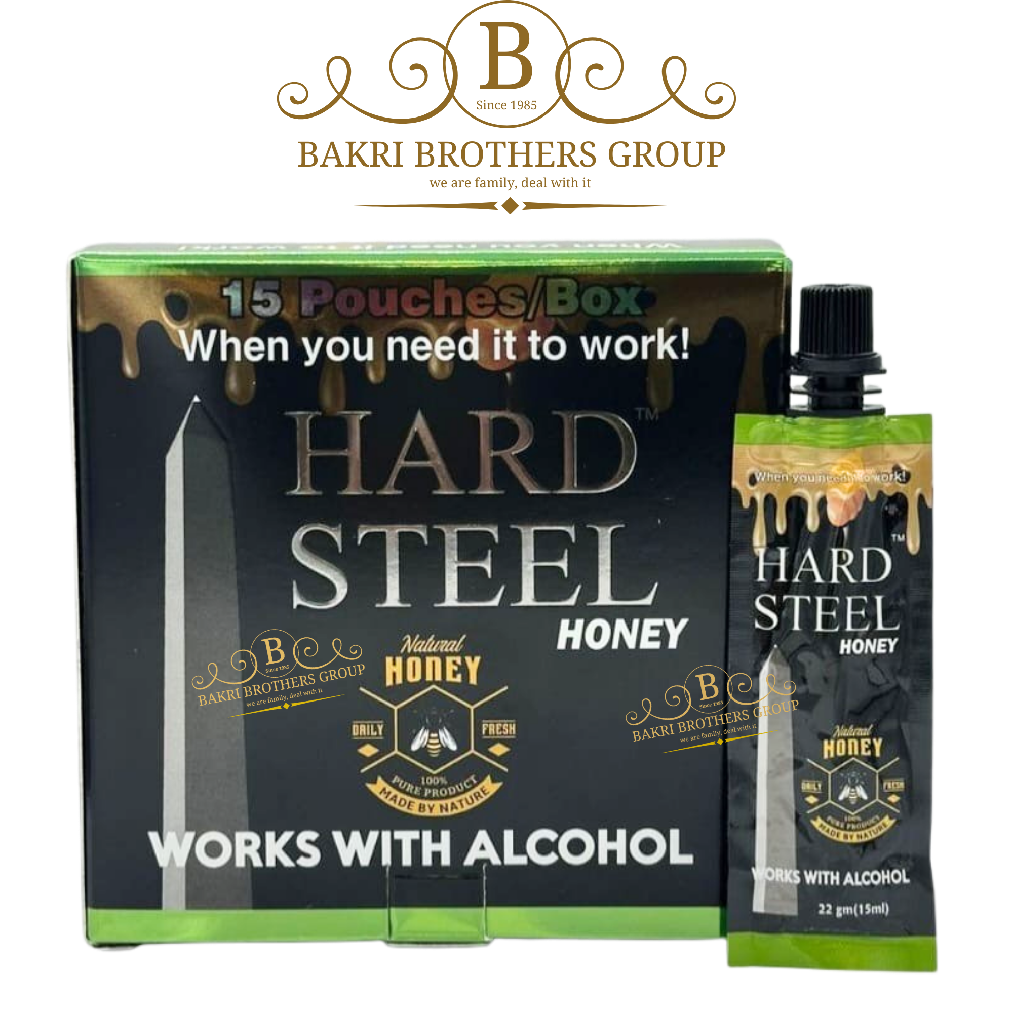 Hard Steel Honey (Black Edition) | 15 Pouches x 22g Each | Case of 12 Boxes | Works with Alcohol