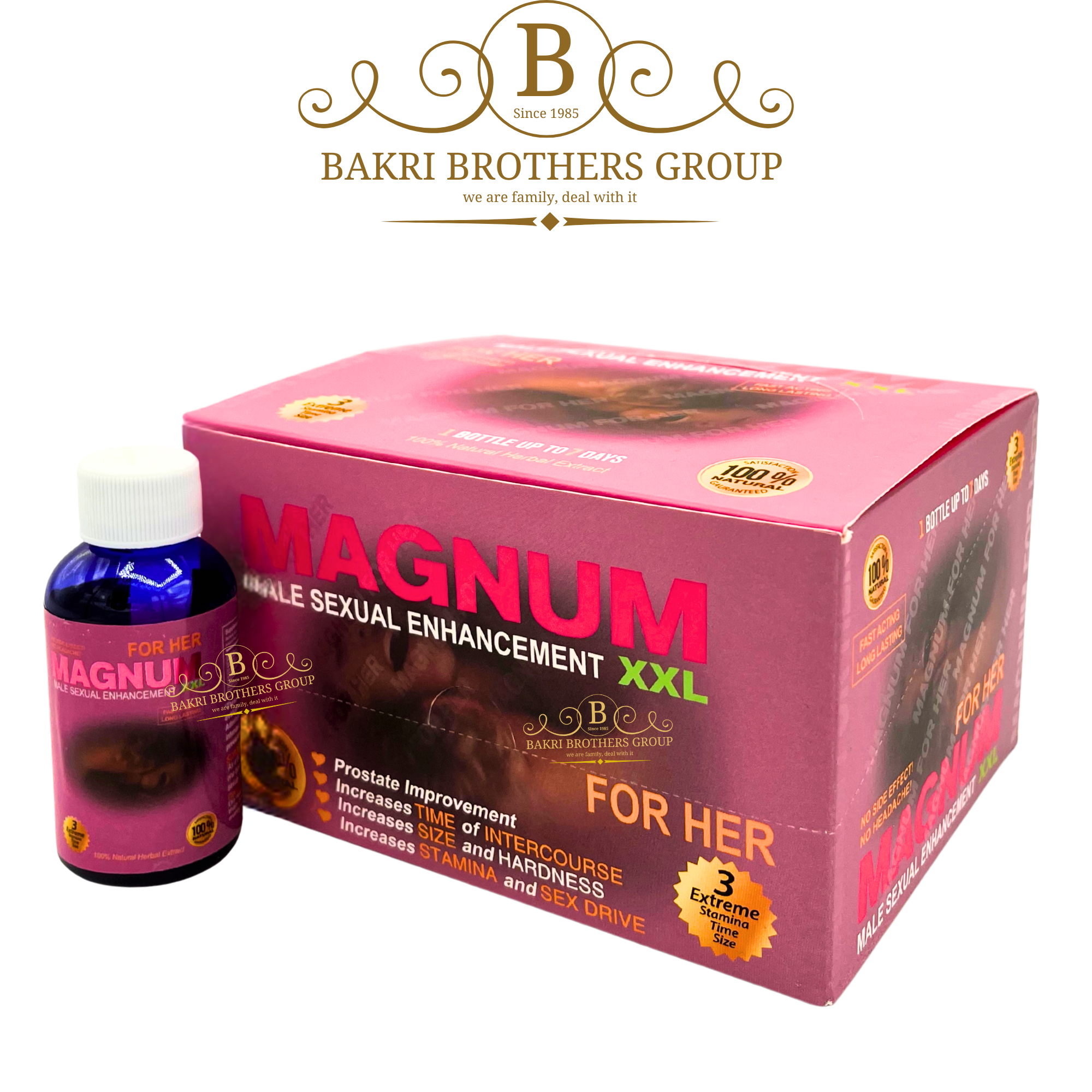 Magnum XXL For Her offers a premium herbal liquid blend packaged in a striking pink bottle and display box for strong shelf appeal. Designed with a smooth berry-inspired flavor, each 2oz bottle provides a convenient, on-the-go option for customers seeking a naturally formulated beverage with an eye-catching look.