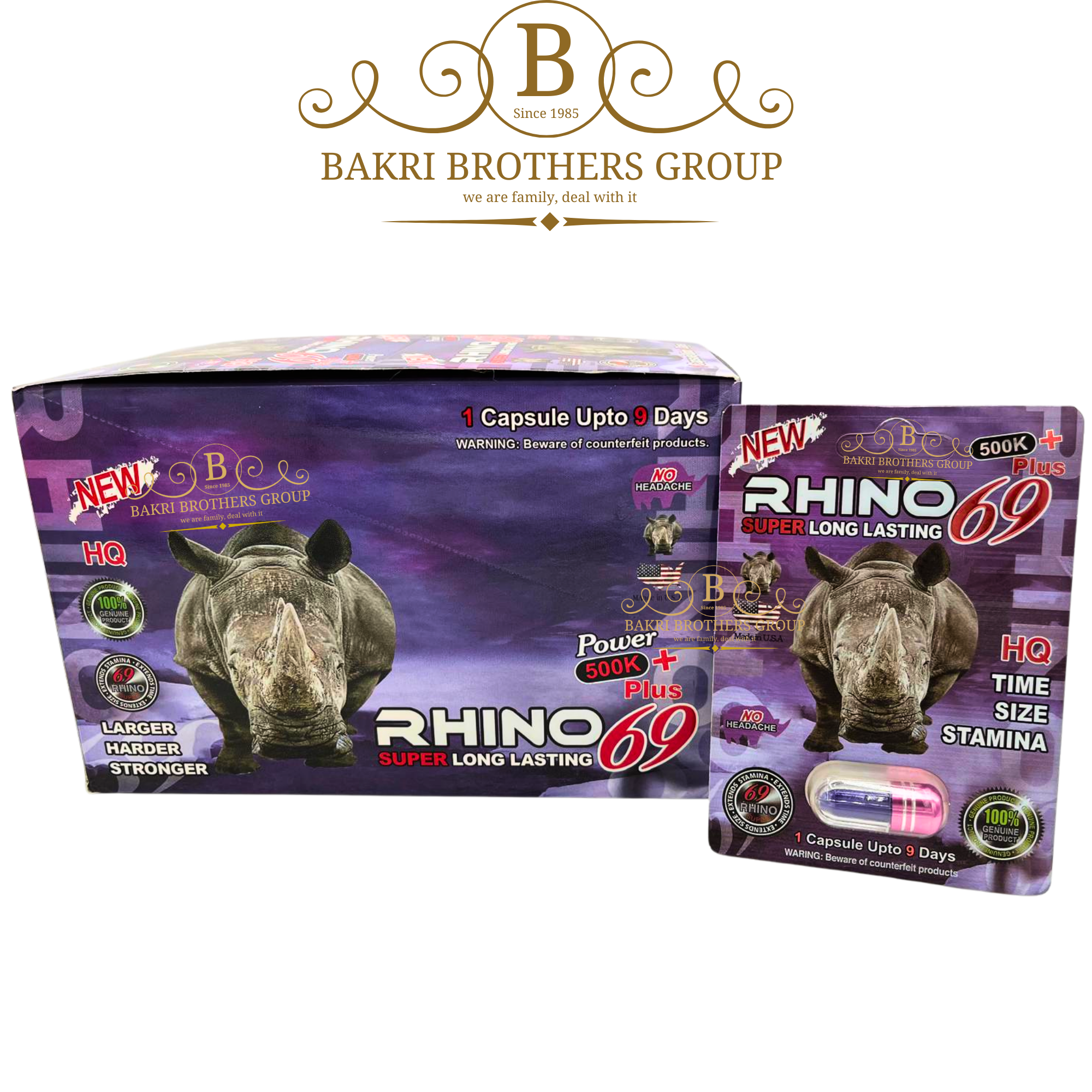Rhino 69 is a single-capsule supplement packaged in bold purple blister cards with the iconic Rhino branding for maximum retail visibility. Each display box includes 24 cards (1 capsule per card), perfect for single-sale retail units. With its super long-lasting formula, Rhino 69 is trusted for supporting time, size, and stamina, while carrying a no-headache guarantee for reliability.